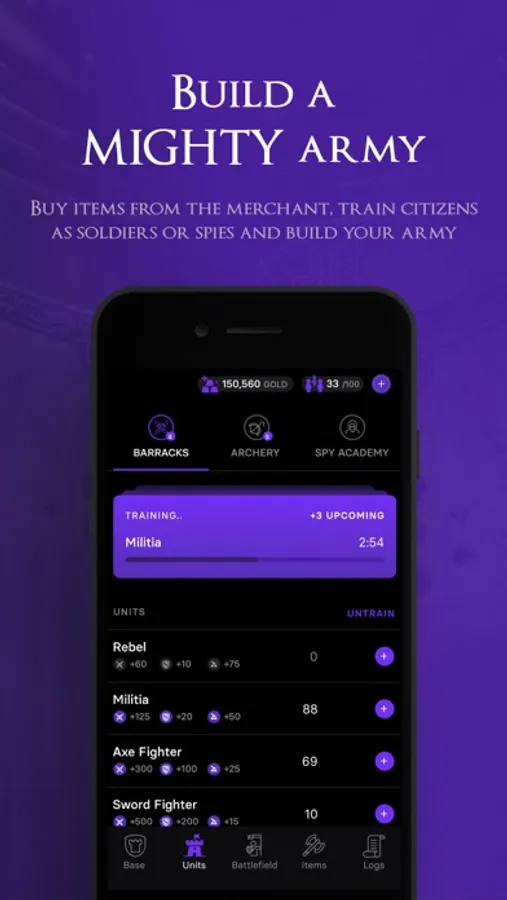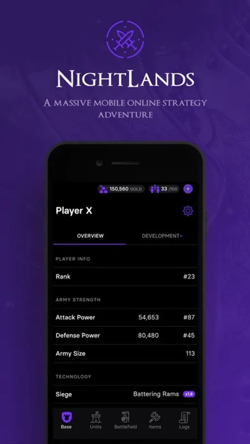 Nightlands is a massive mobile online strategy adventure. In the game, you take on the role of warlord as you build a mighty army by buying items, training soldiers, spying on your enemies and fighting fierce battles. Join the Night now!