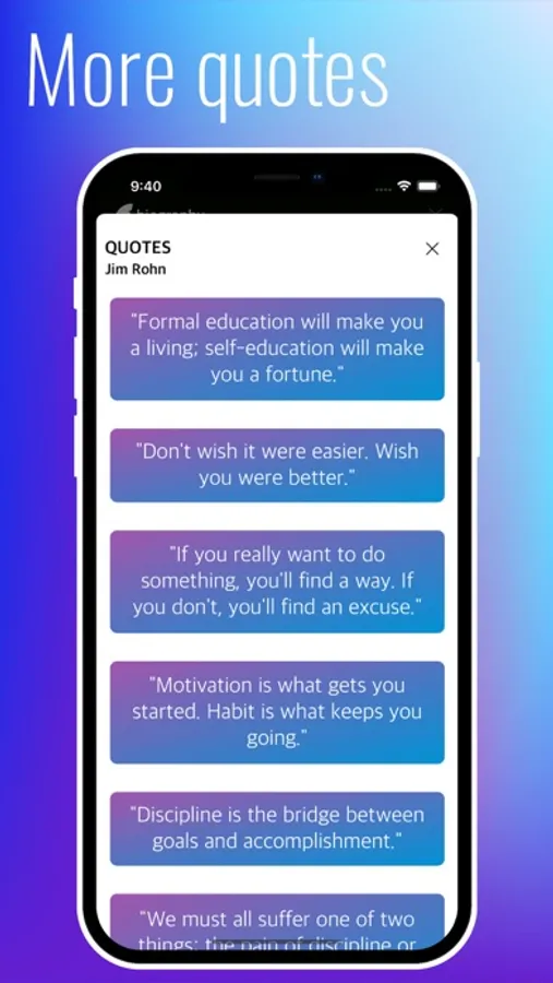Every day we publish quote of the day. And during all day we will sent you motivation quote. Save and share quotes. Make screenshots. Save to Photo Gallery. Just try our App. The best Quote App in AppStore.