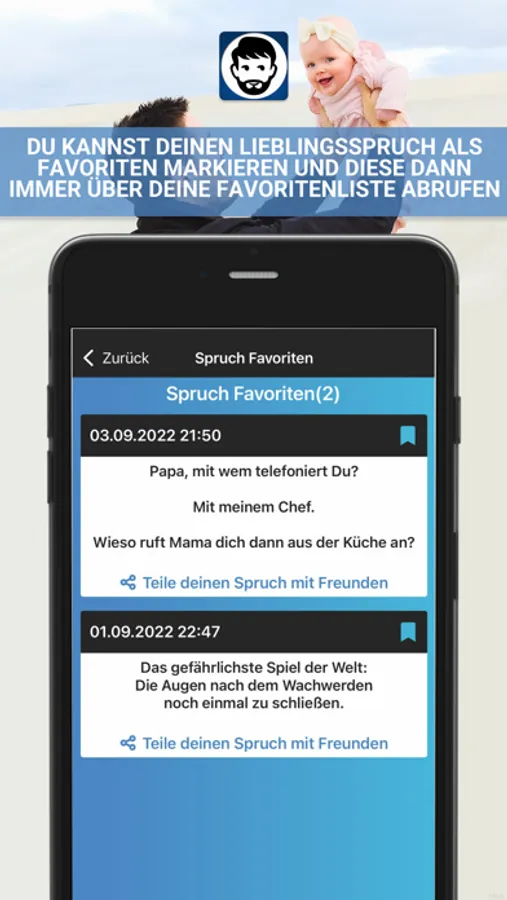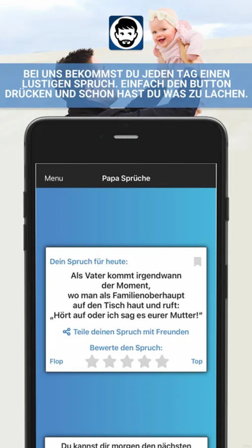 Holt euch jetzt schnell die kostenlose Papa Sprüche App und startet mit einer Prise Humor in den Tag! Viel Spaß!