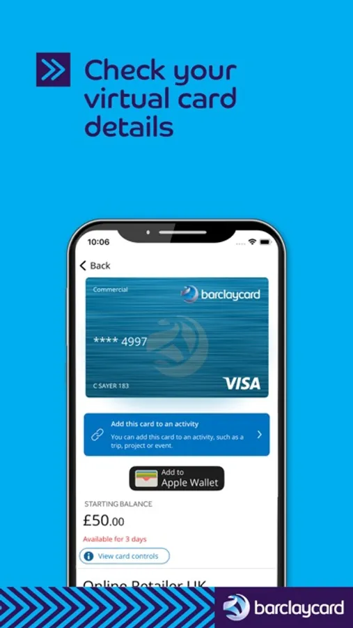 If you're an employee, contractor or other approved user and your employer has a Precisionpay Go account with Barclaycard, you’ll be able to use this app for approved business payments including hotel bookings, flights, office stationery, and more. Through the app, you are issued a virtual payment card, which you can then use online or on-the-go.