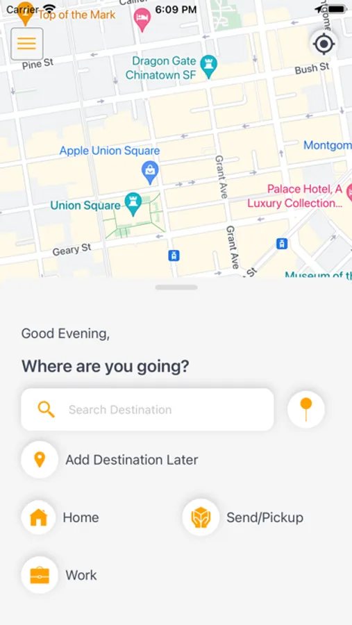 Syötä sovellukseen noutopaikka ja määränpää, jonka jälkeen sovellus kertoo kiinteän hinnan matkallesi.