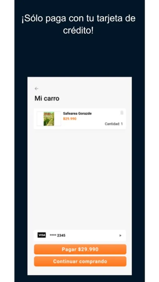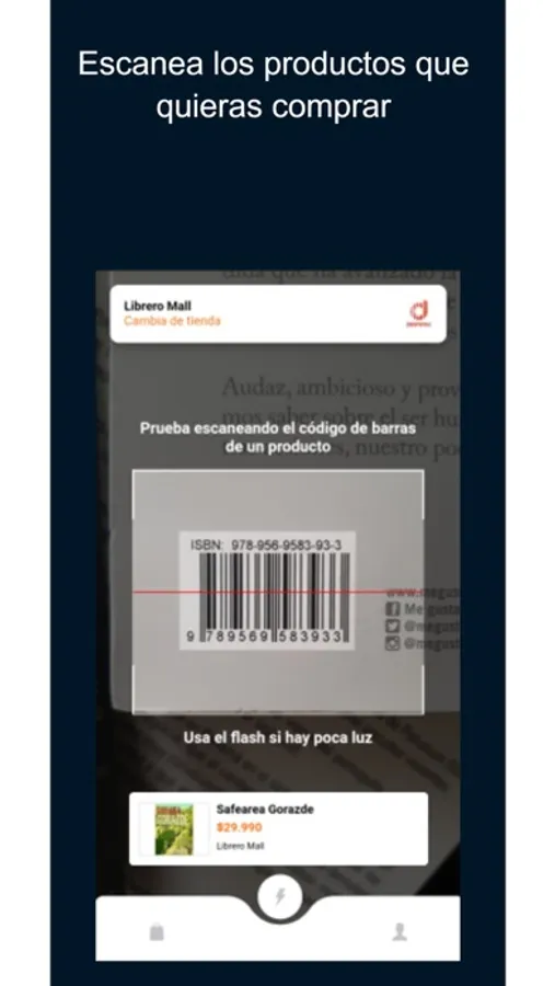 Sólo debes escanear los códigos de barra de los productos que quieras comprar, agregarlos a tu carrito de compras y presionar en "Pagar". La primera vez tendrás que agregar una tarjeta de crédito o débito para efectuar estas compras (todas las tarjetas quedan guardadas de forma segura utilizando OneClick de Transbank).