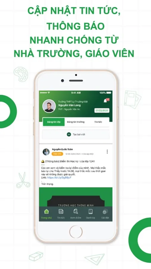 Với Nhà trường, 789 Parent hỗ trợ gửi thông báo, tin tức cũng như bảng điểm của từng học sinh đến phụ huynh. Là hộp thư trực tuyến tiếp nhận những phản hồi, ý kiến của phụ huynh. Hơn thế, Nhà trường có thể chia sẻ những thông tin bổ ích, hình ảnh các hoạt động của trường để xây dựng một cộng đồng trực tuyến giữa Nhà trường với phụ huynh.