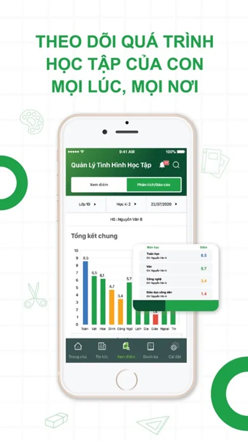 Với giáo viên, 789 Parent cho phép nhập bảng điểm trực tiếp hoặc từ file excel, giúp tiết kiệm thời gian vào sổ điểm cũng như gửi thông báo về lịch học, kế hoạch ôn tập, điểm số của học sinh đến phụ huynh một cách nhanh chóng.