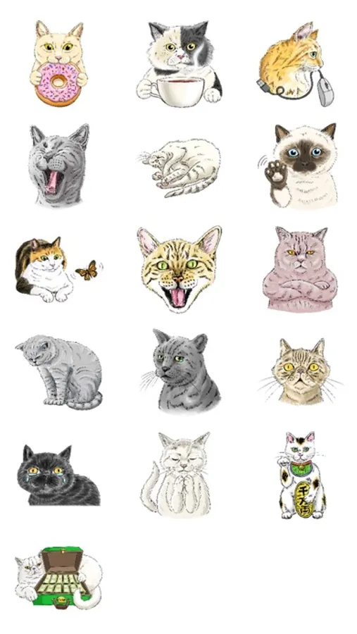 This is a sticker pack for all cat lovers. Contains 16 illustrated cat stickers.