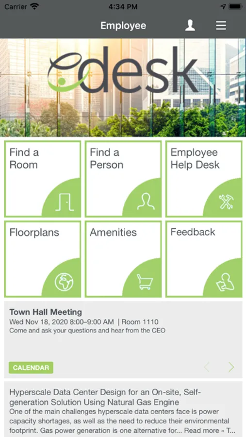 eDesk connects Eurest Services clients to their workplace, bringing all amenities and technology solutions available at their office to one, easy-to-use dashboard. Functionality is tailored to the user’s employer and location, elevating the workplace experience by simplifying the workday.