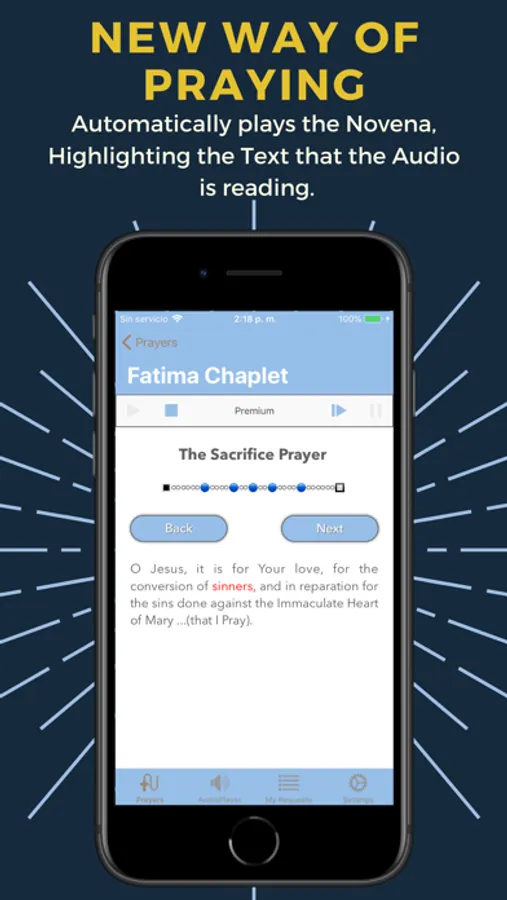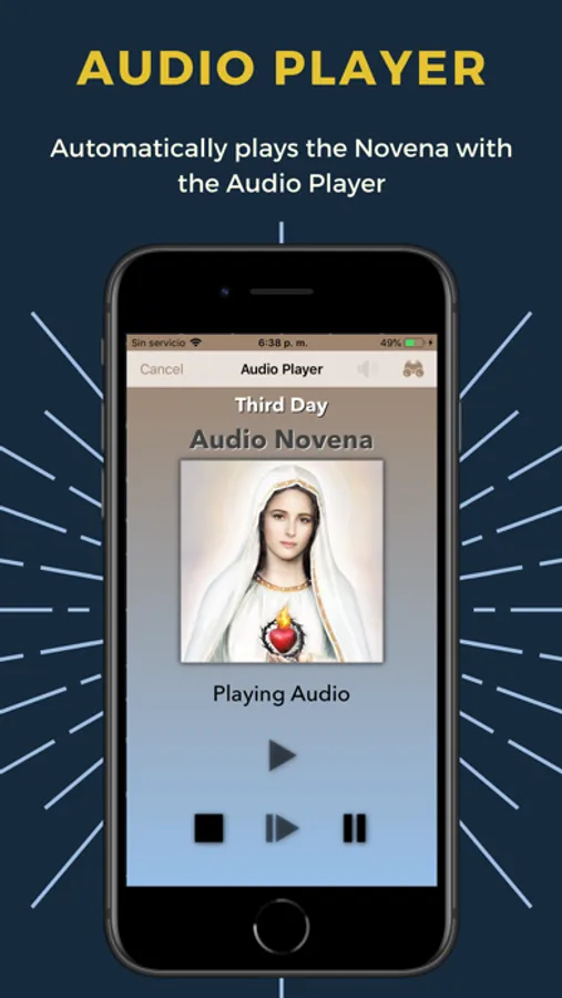 - Automatically plays the Novena, Highlighting the Text that the Audio is reading.