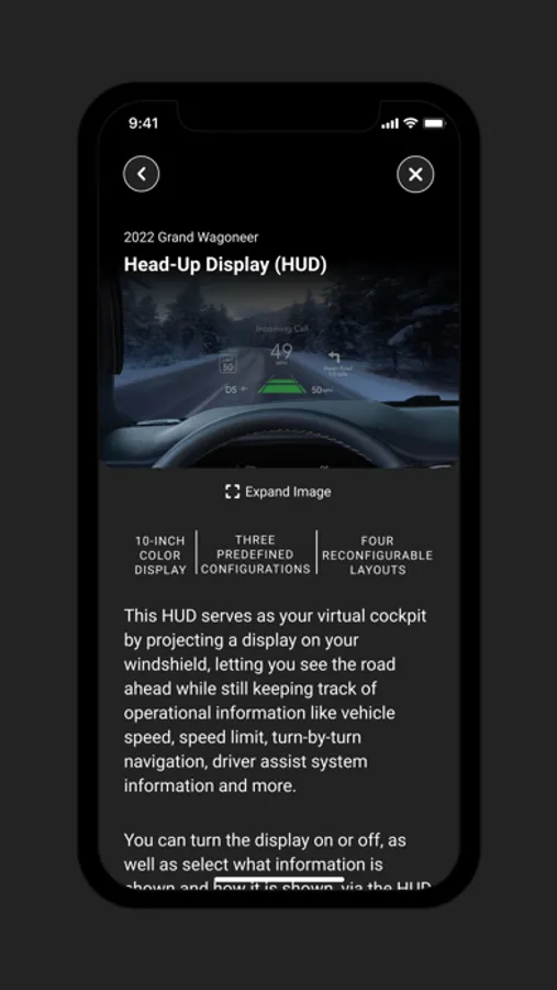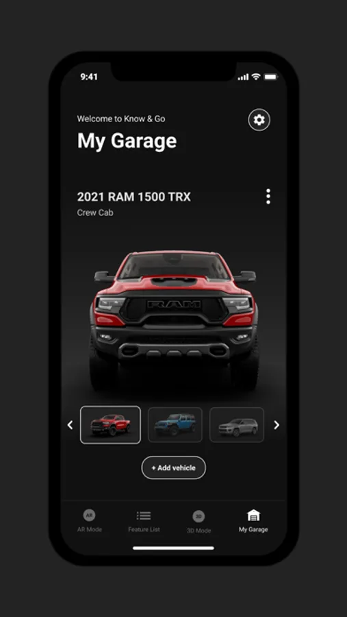 The Augmented Reality (AR) option in the Know & Go app highlights features in the interior and exterior of your vehicle using your camera. Currently only for select 2021 and 2022 models and trim levels. More models across our iconic brands of Alfa Romeo, Fiat, Chrysler, Jeep, Ram, Dodge, and Wagoneer vehicles sold in North America being added regularly. Check back often for more vehicles. Or suggest which model to be released next!