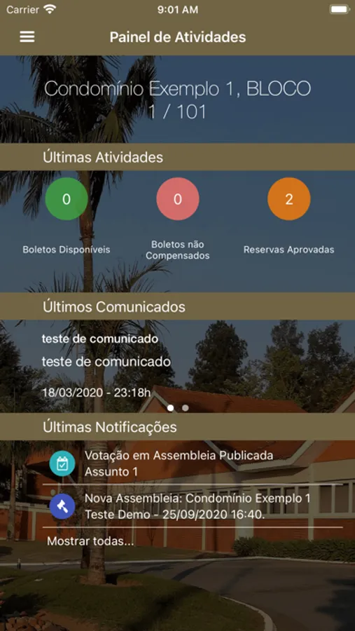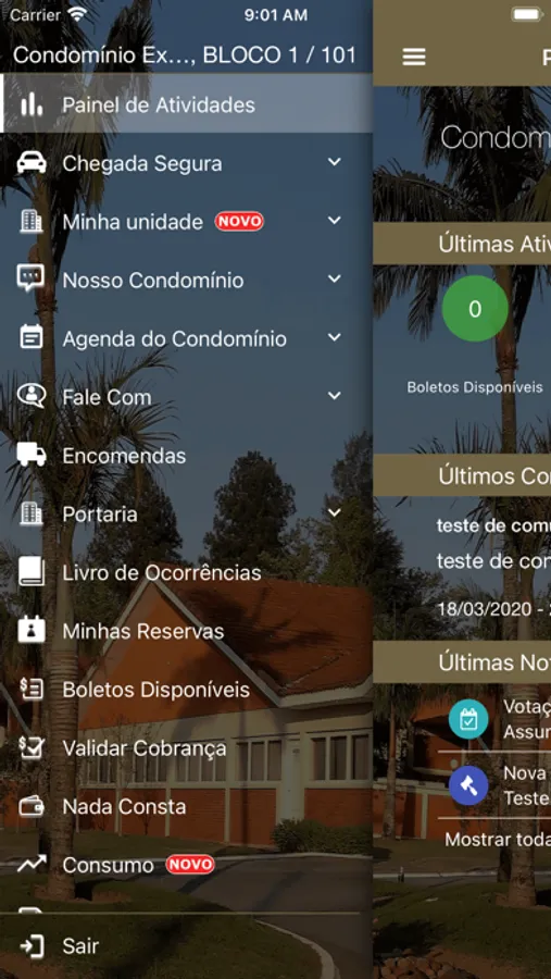 Visualizar cobranças em aberto da sua unidade e obter 2ª via de boletos (com recálculo automático de multas e juros);