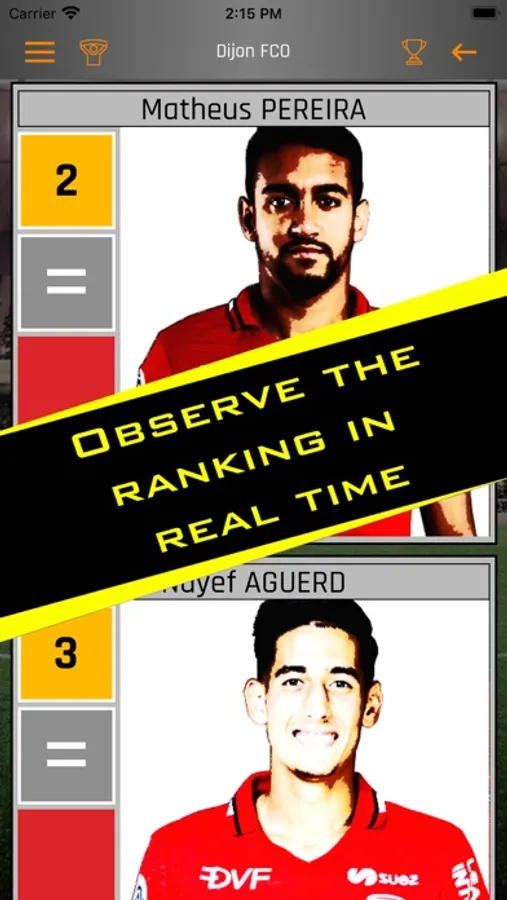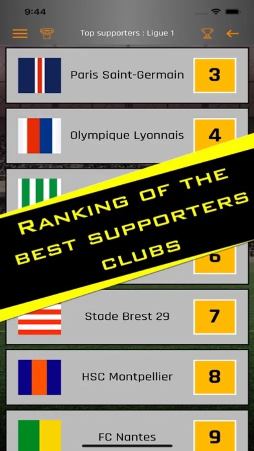 The first app dedicated to football fans. When the match is over, come and evaluate the performance of players in your team. A ranking will be automatically generated for each player. At a glance, you will be able to observe the ranking and the performances of the players of your favored team, but also the other teams of the championship. The ranking will be reset at the beginning of each season.