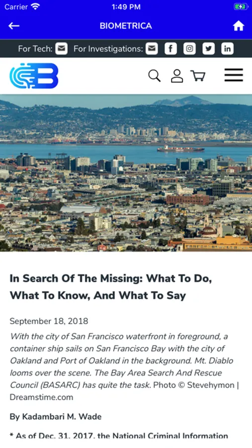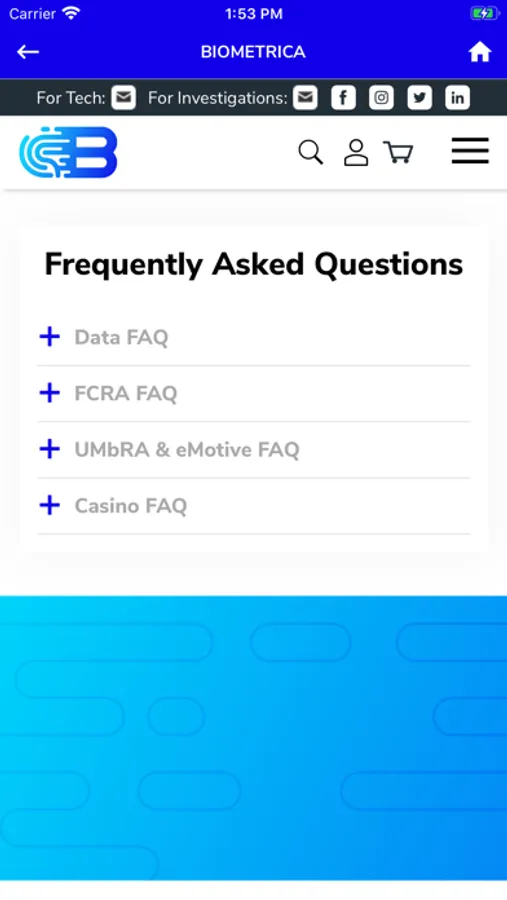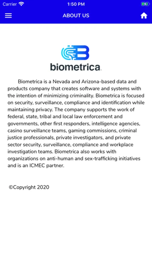 Biometrica™ Mobile gives users access to news stories and press releases from Biometrica™. It also allows users to view our contact information, faq pages, and product information. Users can also contact Biometrica™ through the app.