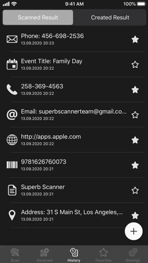 ► History is auto saved for all generated or scanned QR Code and Barcodes.