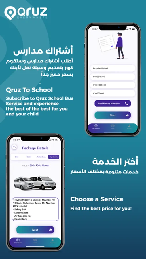 Your very own full mobility solution is here! With Qruz, you can do everything from your daily work commute, on-demand requests for any type of vehicle or model from sedan vehicles all the way to trucks, request a cab, track your children to and from school, with more services to come!
