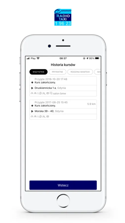 Zachęcamy do zamawiania taksówek przez aplikację i korzystania z płatności kartą.