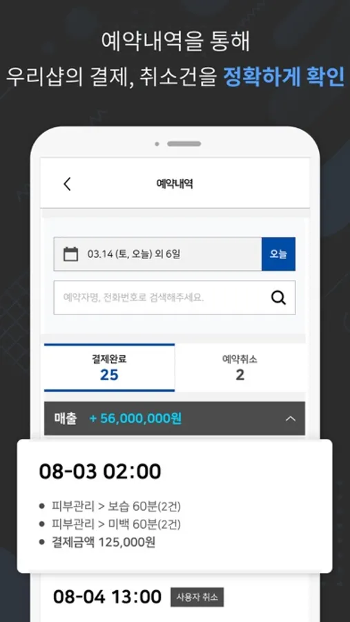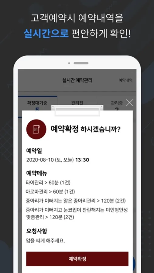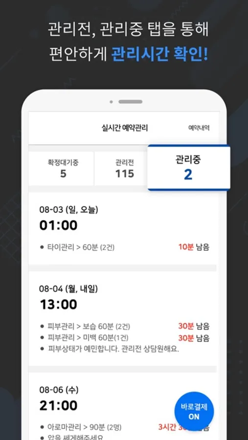 - 관리 시작시간, 관리 종료시간이 표기되어 간편한 예약관리를 하실 수 있습니다.