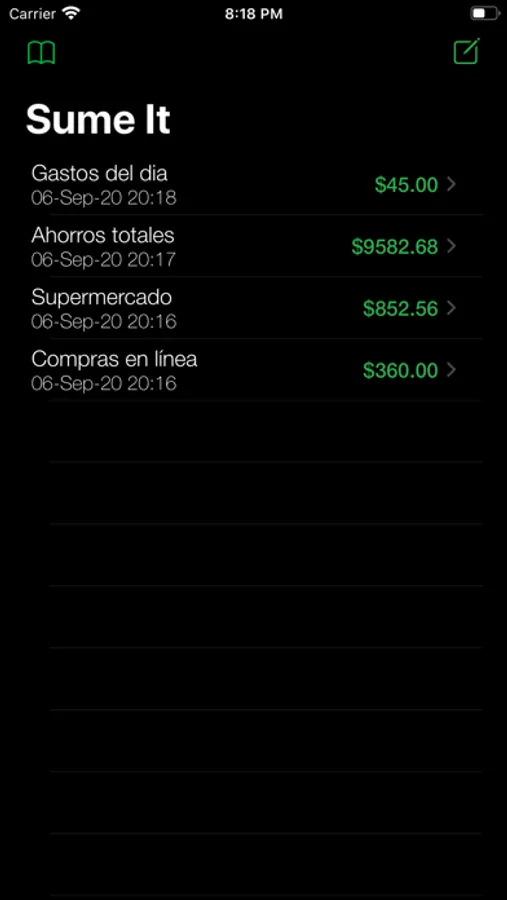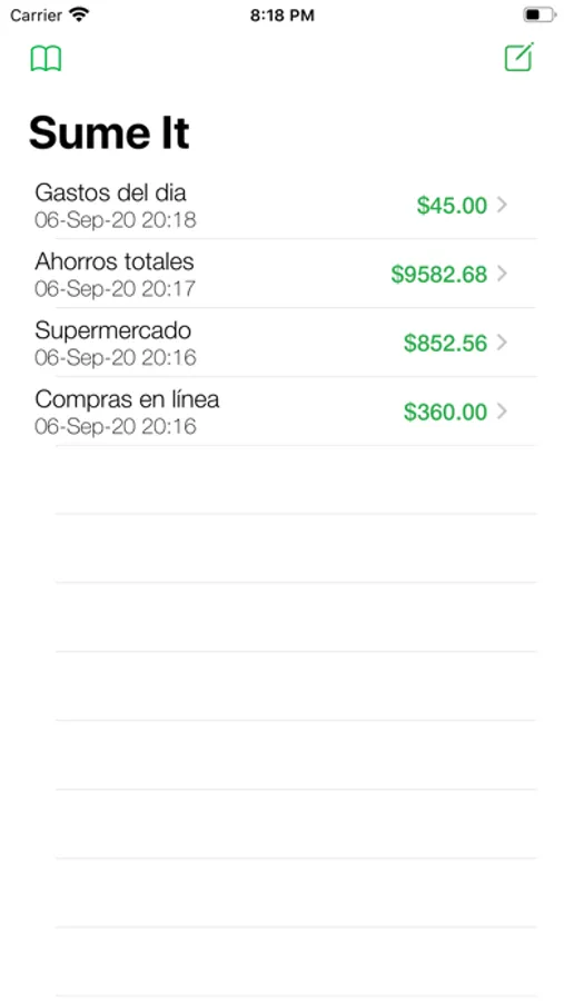 Toma notas con tus gastos y luego velos sumarse automáticamente