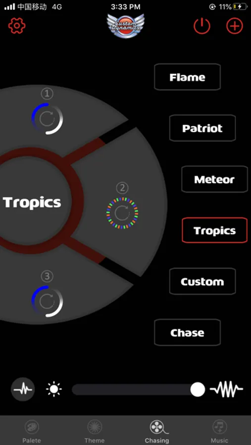 Control brightness and speed of animation modes and chase themes with easy to use sliders.