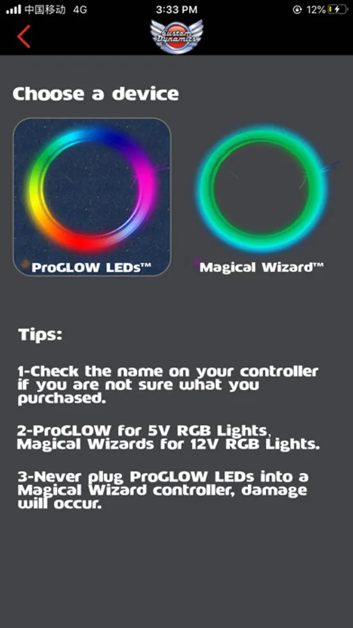ProGLOW® app connects to the Custom Dynamics® ProGLOW® or Magical Wizards™ motorcycle LED lighting system to customize and control your color changing lights. Easy to navigate interface allows for up to three zones to be controlled and customized independently with programmed solid color or color changing animation modes. Unlimited color combinations can be selected using the color wheel or color-match technology with camera access while easy to use sliders let you fine-tune the brightness and speed of each movement. ProGLOW® can also be synced with music for a complete audiovisual experience. Optional brake alert function can be enabled for increased safety while riding. While added battery monitor, timer and security features give you control of your lights when out of sight.