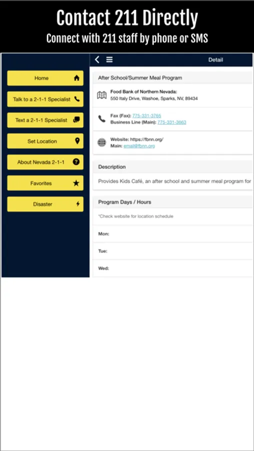 * Direct link to the Nevada 211 call center for more information, by phone or text