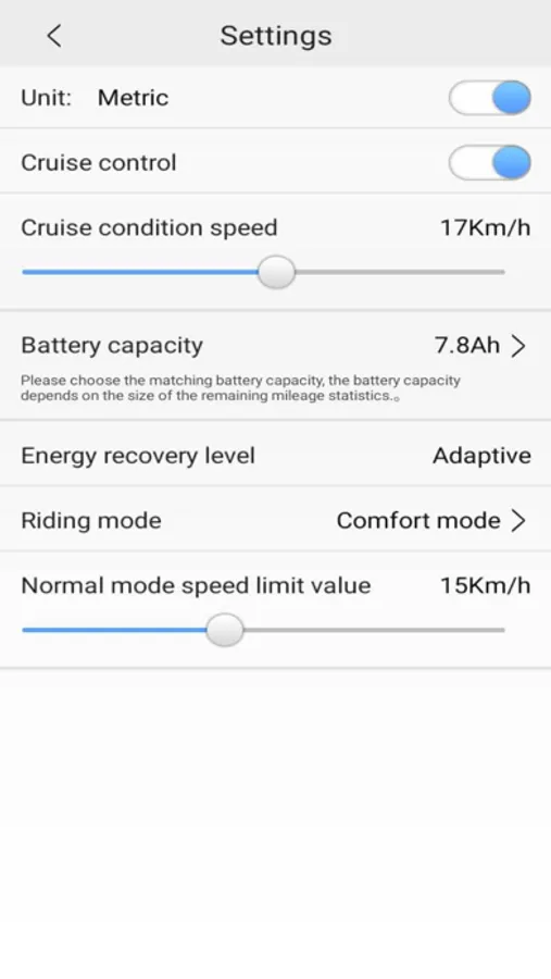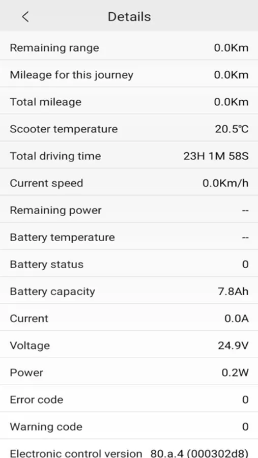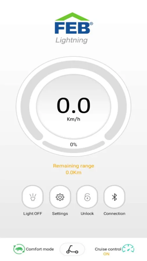 This is a smart electric scooter APP. APP communicates with the scooter through Bluetooth. Through the APP, you can view the detailed information of the scooter, set the parameters, and support functions such as firmware upgrade.