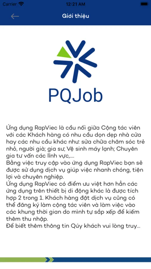 Ứng dụng RapViec là cầu nối giữa Cộng tác viên với các khách hàng có nhu cầu dọn dẹp nhà cửa hay các nhu cầu khác như: sửa chữa chăm sóc trẻ nhỏ, người già; gia sư; Vệ sinh máy lạnh; Chuyên gia tư vấn các lĩnh vực,….