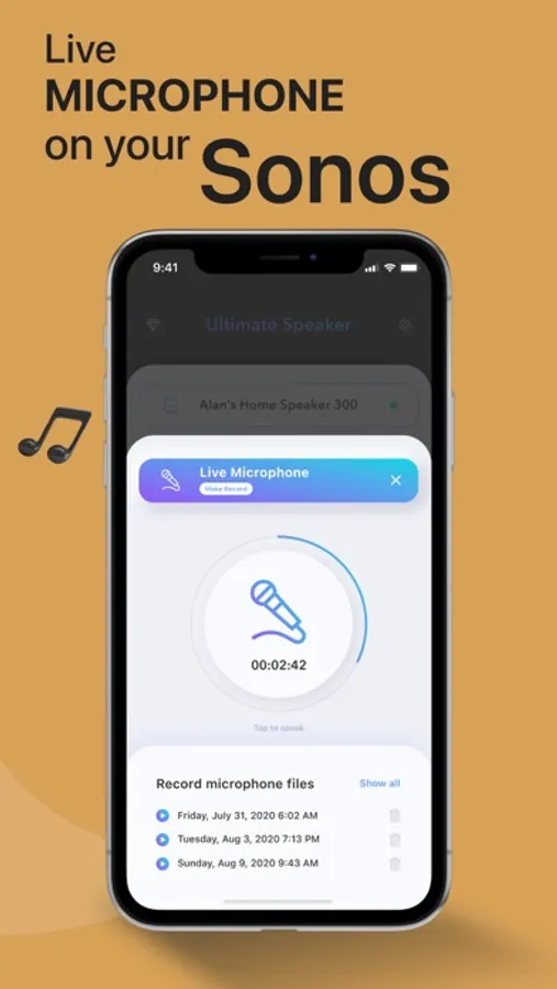Use your iPhone as a microphone and cast music from your library to your Speaker with ease!