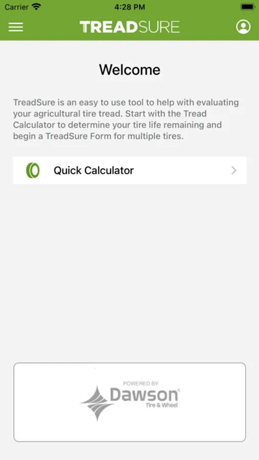 Welcome to Treadsure - the agricultural equipment industry’s only app to analyze treadwear, powered by Dawson Tire and Wheel!