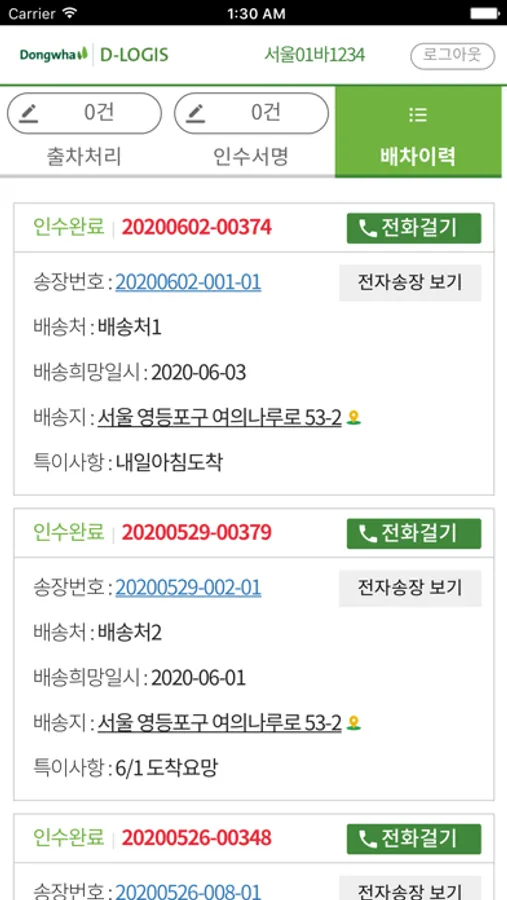 동화기업과 거래중인 배송기사만 사용 가능합니다.