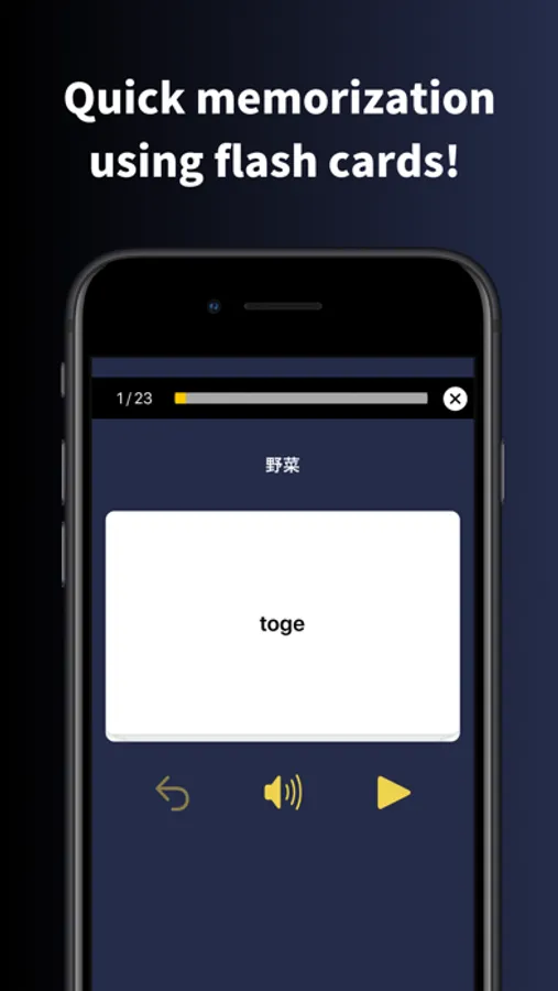 If you know the meaning of the word, swipe to reveal the next word. If you don't, tap on the card to know the meaning of the word. You can also hear the native pronunciation by tapping the voice icon.