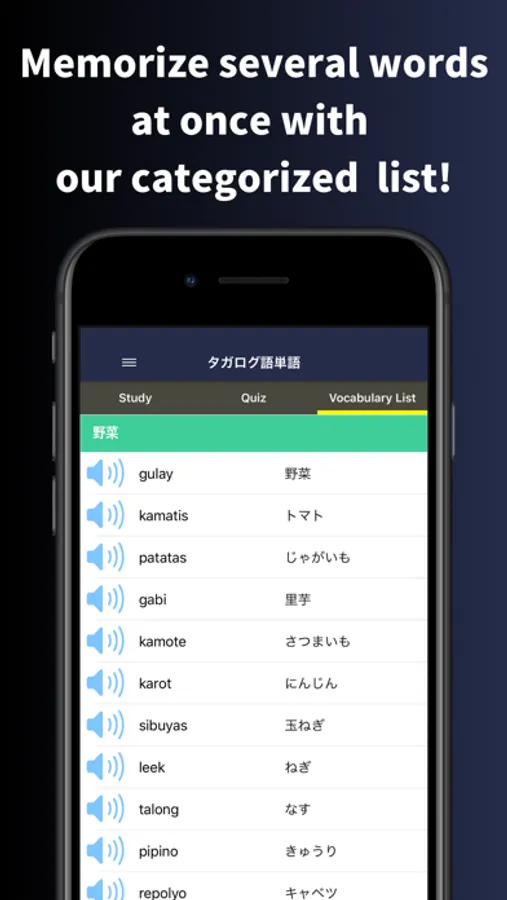The app to help you learn and memorize Tagalog vocabulary efficiently and fast! Learn all essential words used in daily conversation. 741 words from beginner to intermediate level. Everything for free!