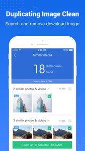 Easily remove duplicate photos, screenshots, oversized image and download pictures on your iPhone. Clean up your device in just one tap with the Smart Cleaning function.