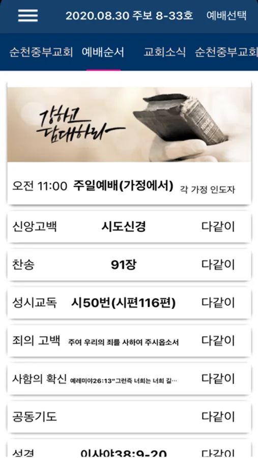 그동안 교회의 낭비의 대명사였던 종이주보를 대체하는 스마트주보입니다. 스마트시대를 맞이해서 교회도 스마트기기를 이용함으로써 교회사역과 성도들의 교회생활에 편리성과 효율성을 더할 수 있고 자원과 교회 재정도 절약할 수 있습니다. 순천중부교회는 이러한 교회 혁신에도 앞장서 나가는 스마트한 교회입니다.