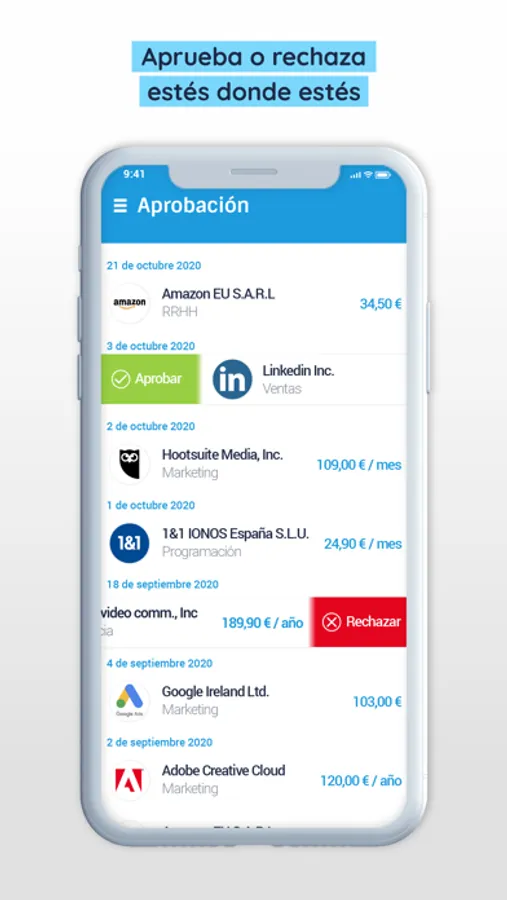 2. Establece flujos de aprobación previo al pago para un mayor control y visibilidad de las compras.