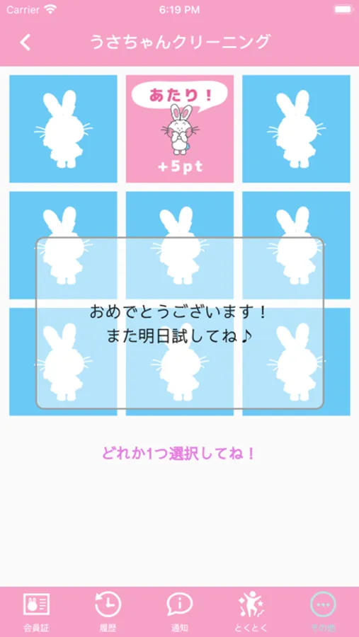 1日1回挑戦できるミニゲームでは、当たりが出ればポイントを
