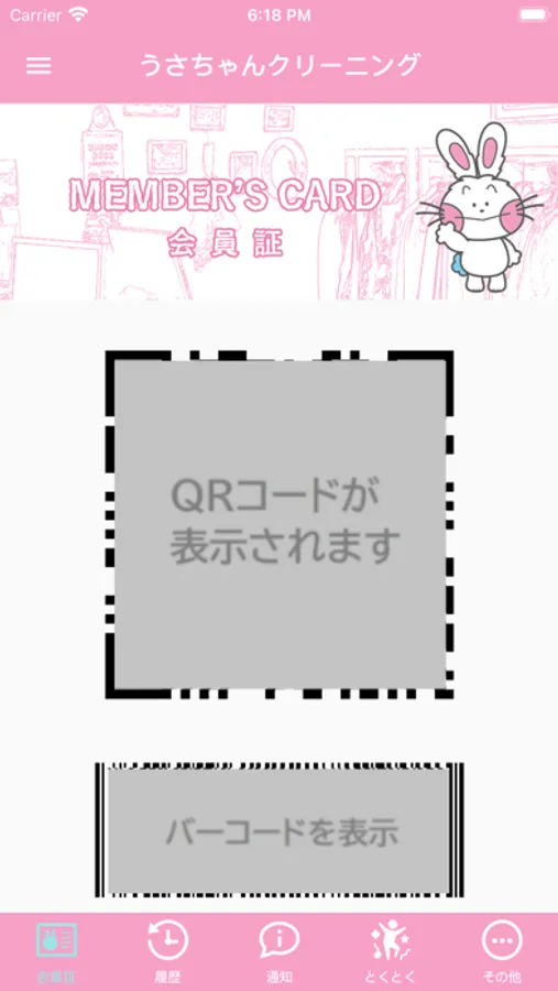 うさちゃんクリーニングの特別会員様向けアプリです。共通カード導入店舗にてご利用いただけます。
