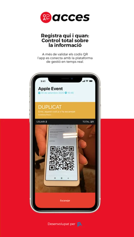 La herramienta de control acceso mediante QRs de OA2 Produccions.