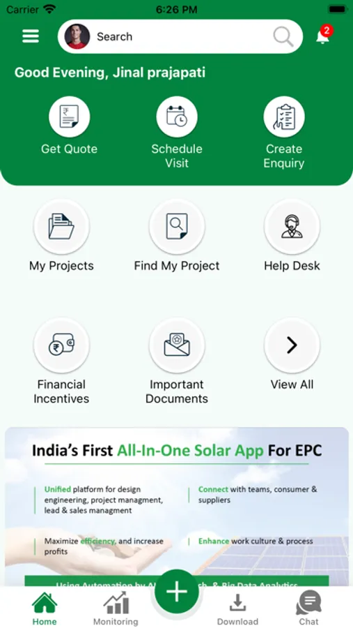The Green Energy changes the way end customers and rooftop solar professionals work. Highlights and features of the app for Solar Professionals are listed below: