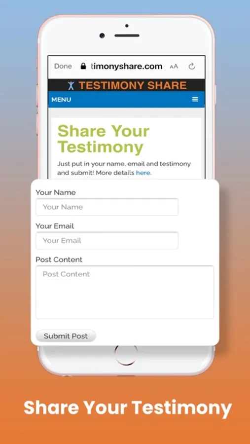 Testimony Share lets you share your Christian testimony with the world. Join believers who have shared over one thousand encouraging stories of what God has done in their lives through Jesus Christ. Salvation, miracles or a simple answer to prayer… everyone has a story.