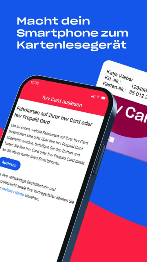 Die hvv Card ist Ihre elektronische Kundenkarte. Hiermit können Sie sich als Abonnent ausweisen. Mithilfe der hvv Card Info-App und einem NFC-fähigen Smartphone können Sie Ihre hvv Card selbständig auslesen – jederzeit und überall. So haben Sie immer im Blick, welche Produkte sich auf Ihrer Kundenkarte befinden.