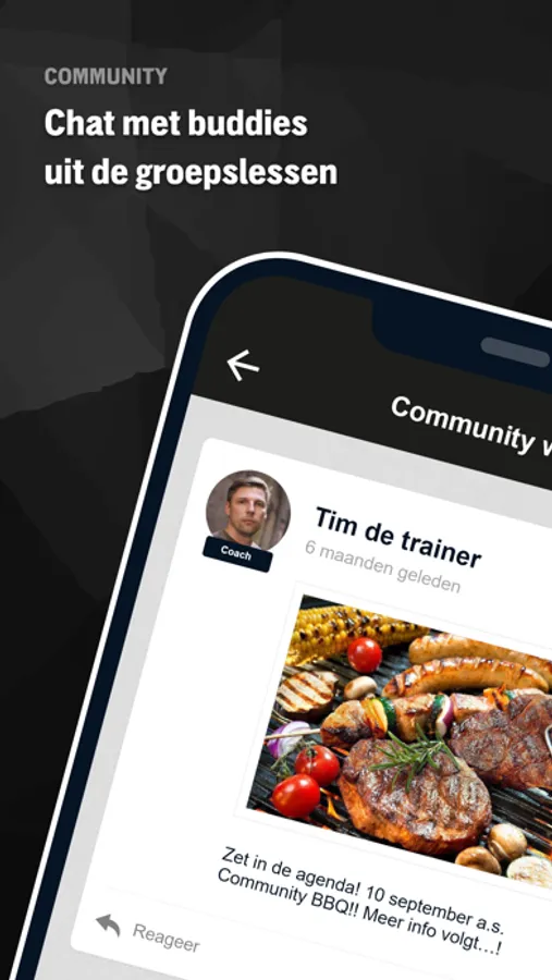 - Houd je trainingprogressies bij en volg je trainingbuddies.
