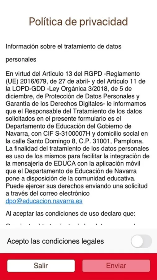 “educa NA” está pensada para facilitar la comunicación de toda la comunidad educativa mediante la recepción/envío de mensajes instantáneos. La aplicación está basada en TokApp School y permite el acceso a Educa con facilidad. Pueden sincronizarse los contactos para mantener conversaciones con otros usuarios de la aplicación que tengamos en la agenda. Cumple con el Reglamento General de Protección de Datos. Se accede mediante las credenciales Educa.