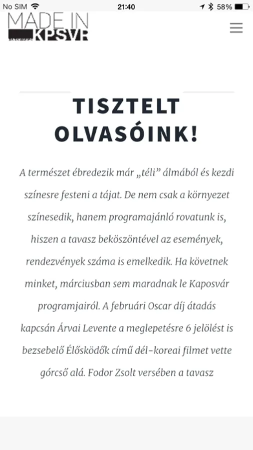 A Made in Kaposvár applikáció az 5 éven keresztül, havi szinten, Kaposváron megjelenő programmagazin hagyományaira épülve jött létre - az online világban.