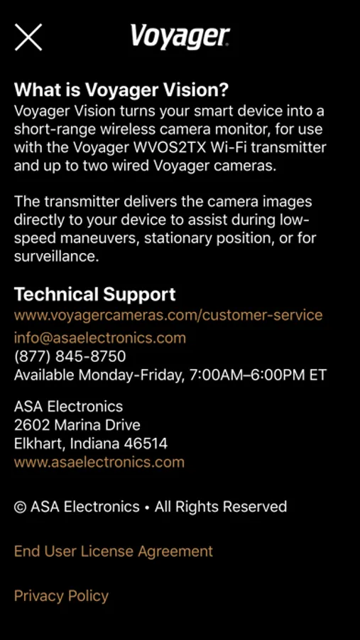 Turn your device into a rear camera monitor for use with the Voyager WVOS2TX wifi transmitter and wired Voyager camera. The transmitter delivers the camera image directly to the Voyager Vision app when backing up. The system was specifically designed for reversing at low speeds, perfect for construction sites, campgrounds, and boat launches.