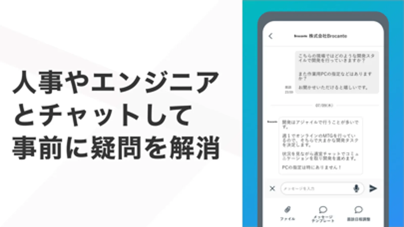 求人に応募をする前に興味のある企業とチャットをすることができ、