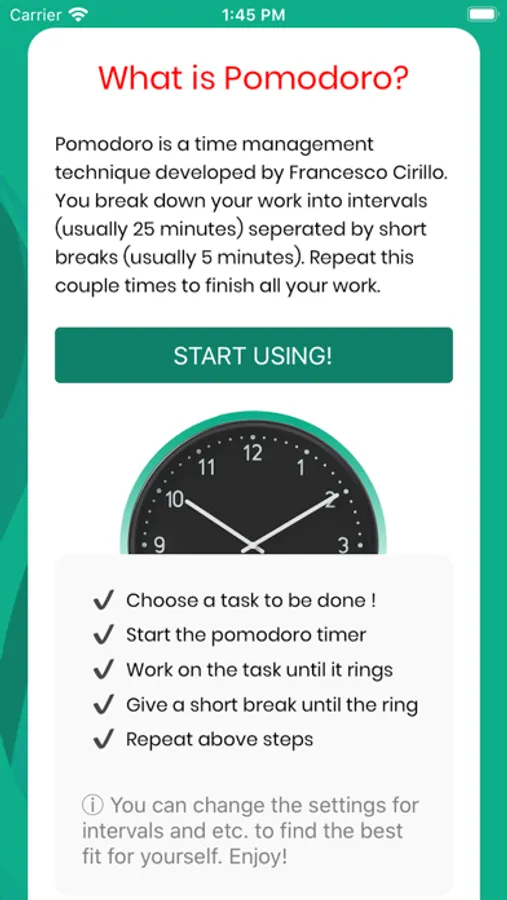 Pomodoro Focus Timer lets you to apply this technique and improve your work efficiency.