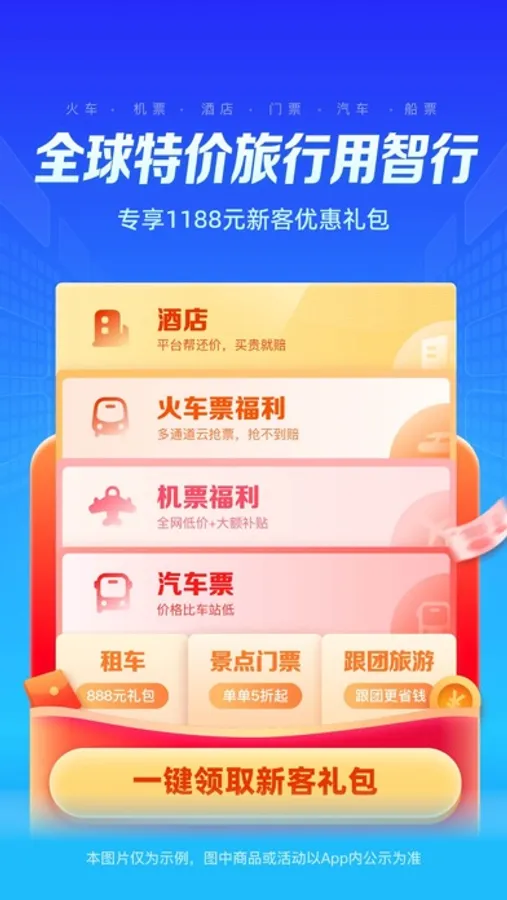 智行旅行客户端支持火车票、机票、酒店、景点、汽车票、船票等旅游产品在线预订,抢票超快、机酒特价!