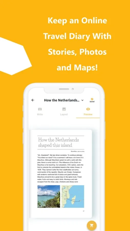 Our app's travel writing and preview modes bring your world travels to life. Whether you're a seasoned blogger or not, create a beautifully designed travel blog with layouts and travel photos, and preview it as you see the final travel log.