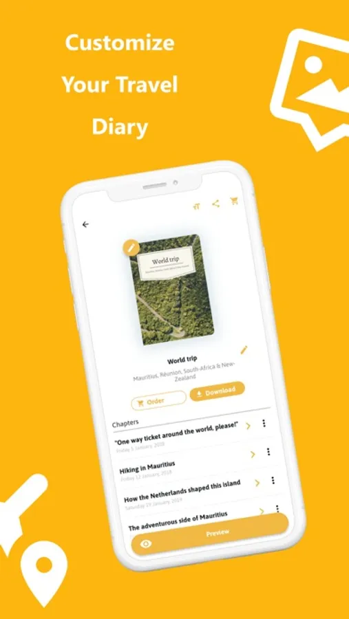 Transform your travel blog into a coffee table book, travel guide, or more with one tap using the Travel Diaries PDF export feature.