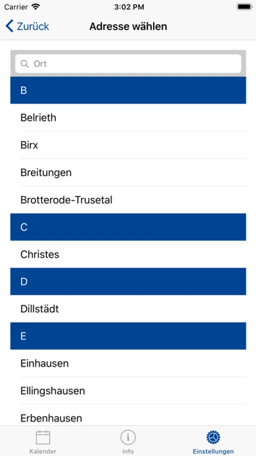 Die Auswahl Ihres Wohnortes erfolgt in wenigen Schritten. Bei der Eingabe wird der Nutzer durch die hinterlegte Autofill-Funktion unterstützt. Ab dem ersten Buchstaben wird die Vorschlagsliste mit jeder weiteren Eingabe eingegrenzt.