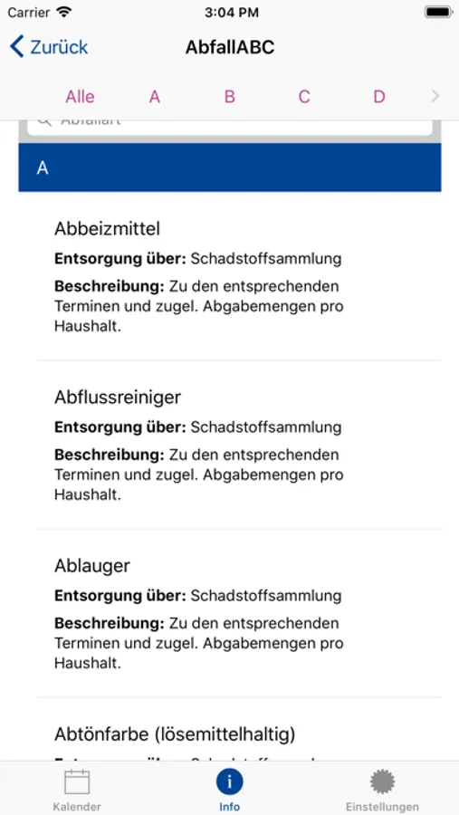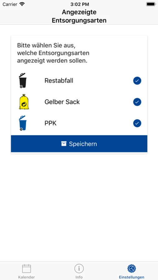 - Abfallbehälter filtern (Restabfalltonne, Papiertonne, gelben Sack sowie